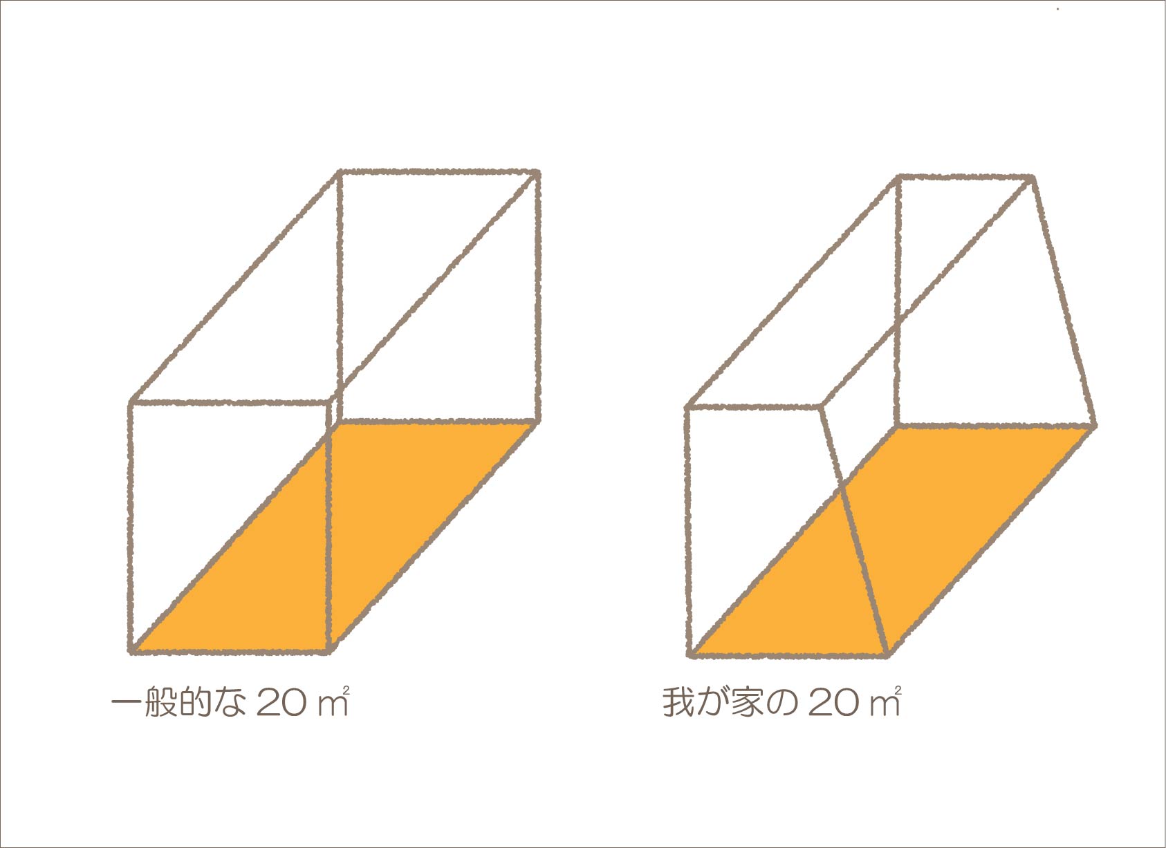 狭さの原因の一つに、斜線制限によって窓際の壁が斜めで、デッドスペースが多いことも影響してます。