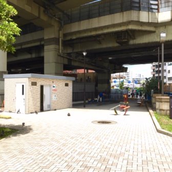 油堀川公園は、門前仲町駅を出て清澄通りを清澄白河方面に向った首都高速道路の高架下にある公園です。