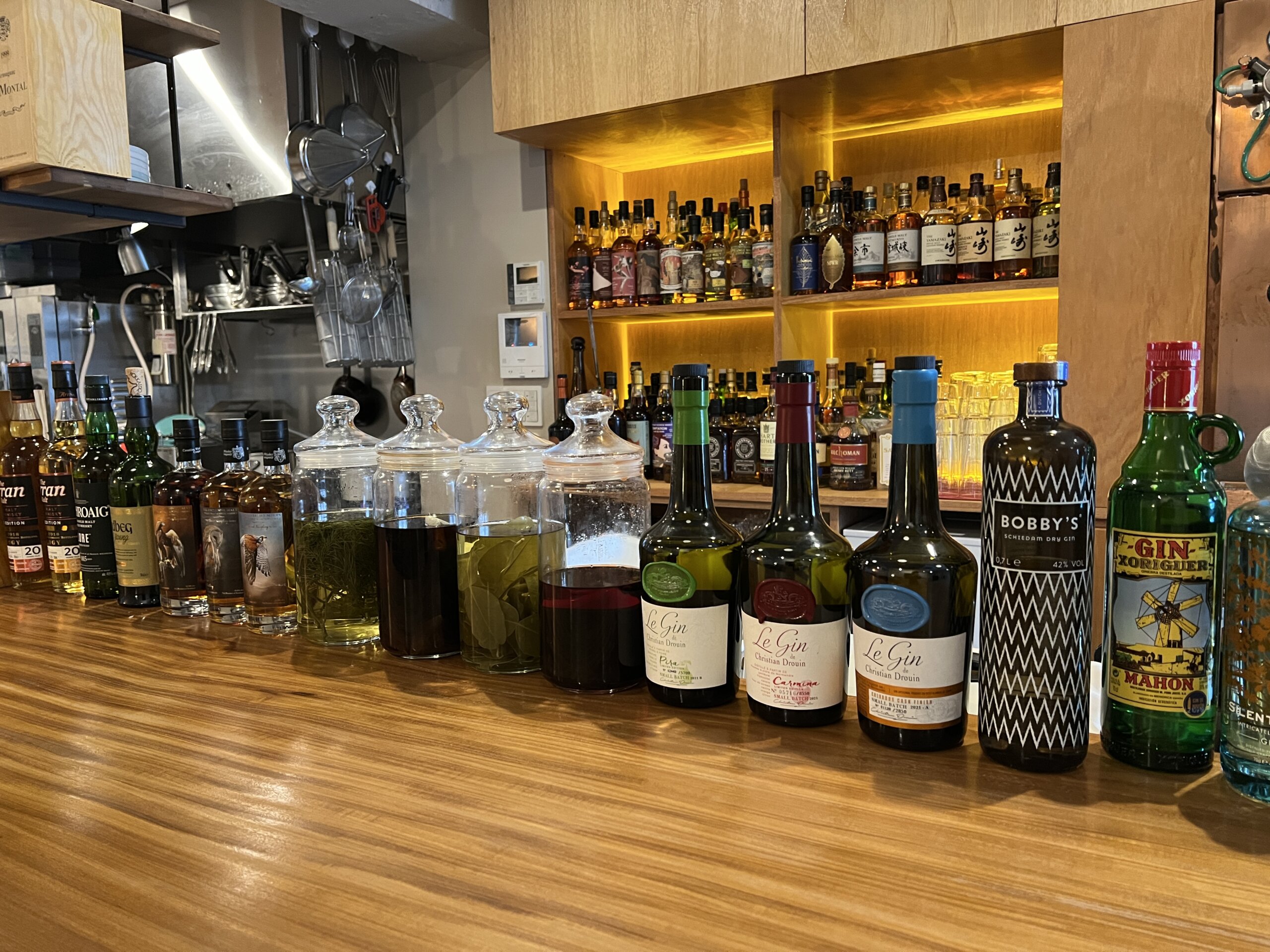 とにかくお酒の種類が豊富で、基本的にビールは定期的に入れ替わる樽生が6種類、ジン50種類、ワインはナチュールワインを中心に50種類、ウイスキーはなんと100種類もご用意!