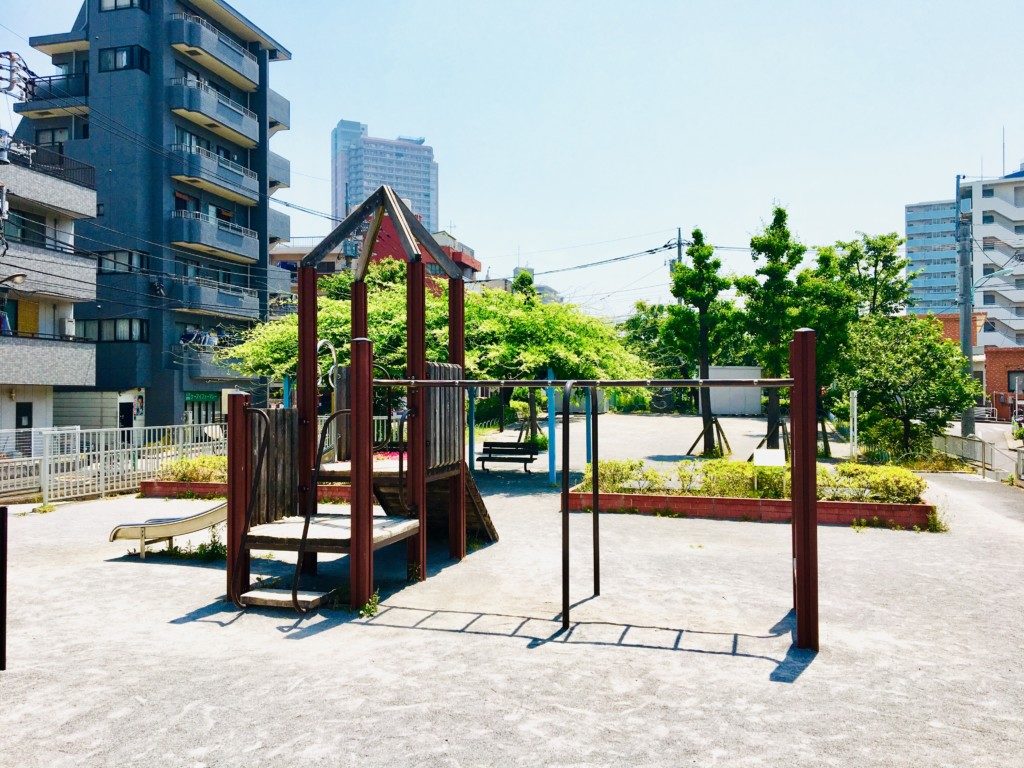細長い公園ですが一通りの遊具が揃っているので、小さなお子様が十分に楽しめる公園です。