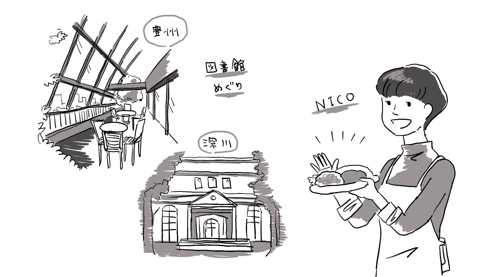 cap:ちょっと前までは、江東区内の図書館巡りにハマっていた草薙さん。最近は、休日に森下のNICO 25 TO GO でランチの手伝いをしているそう。深川のいろんなことに、興味津々です!