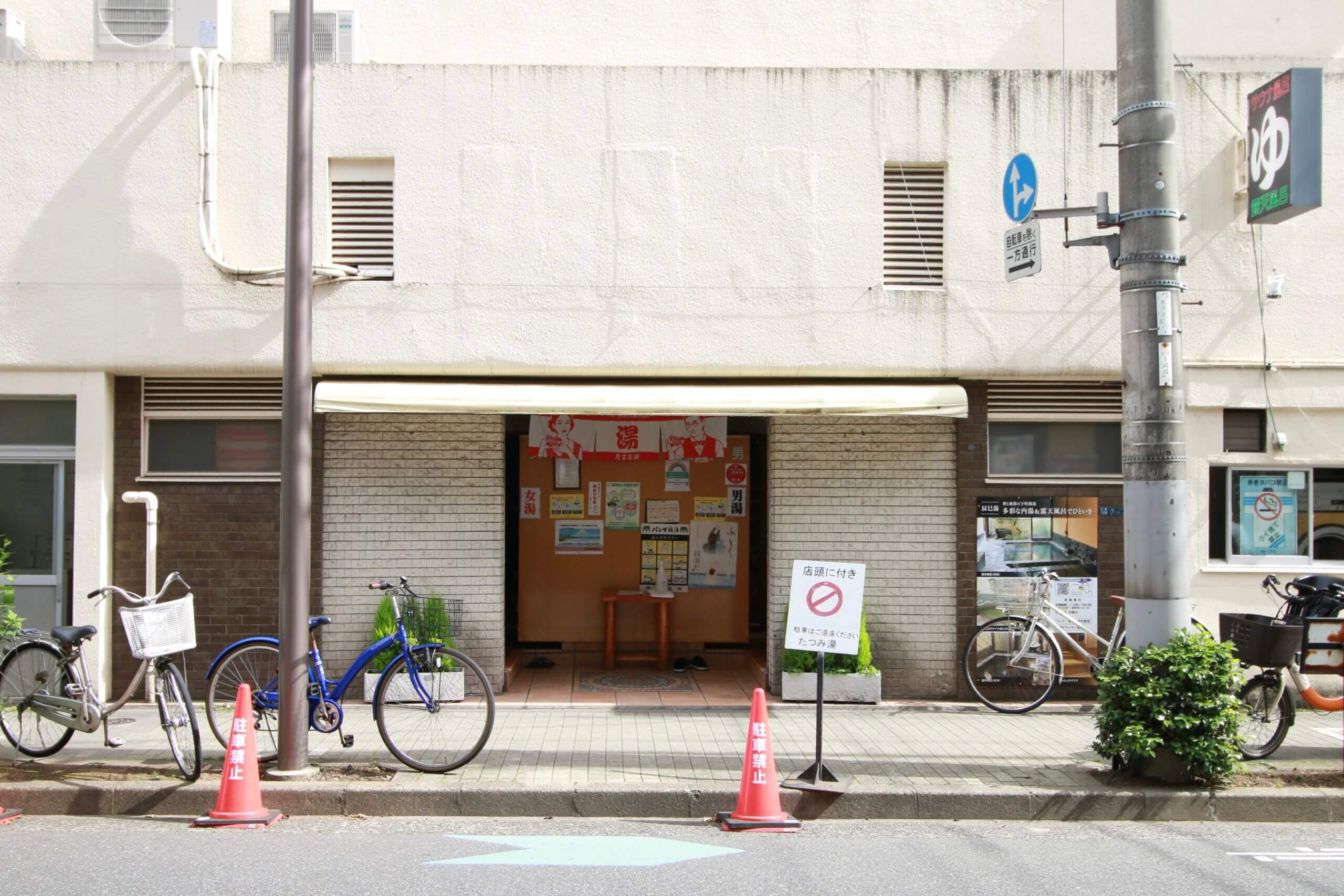 photo:地元の方が多く集まる辰巳湯。深夜0時まで営業している。