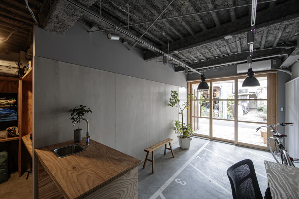 ポイントは、外気に触れる室内の壁に外装材の金属板を利用して断熱性を高め、天井部を抜くことで空間を広く感じられるように工夫し、従前は倉庫という無機質で冷たい印象だった空間が、快適性の高い多目的空間へと生まれ変わった点にあります。