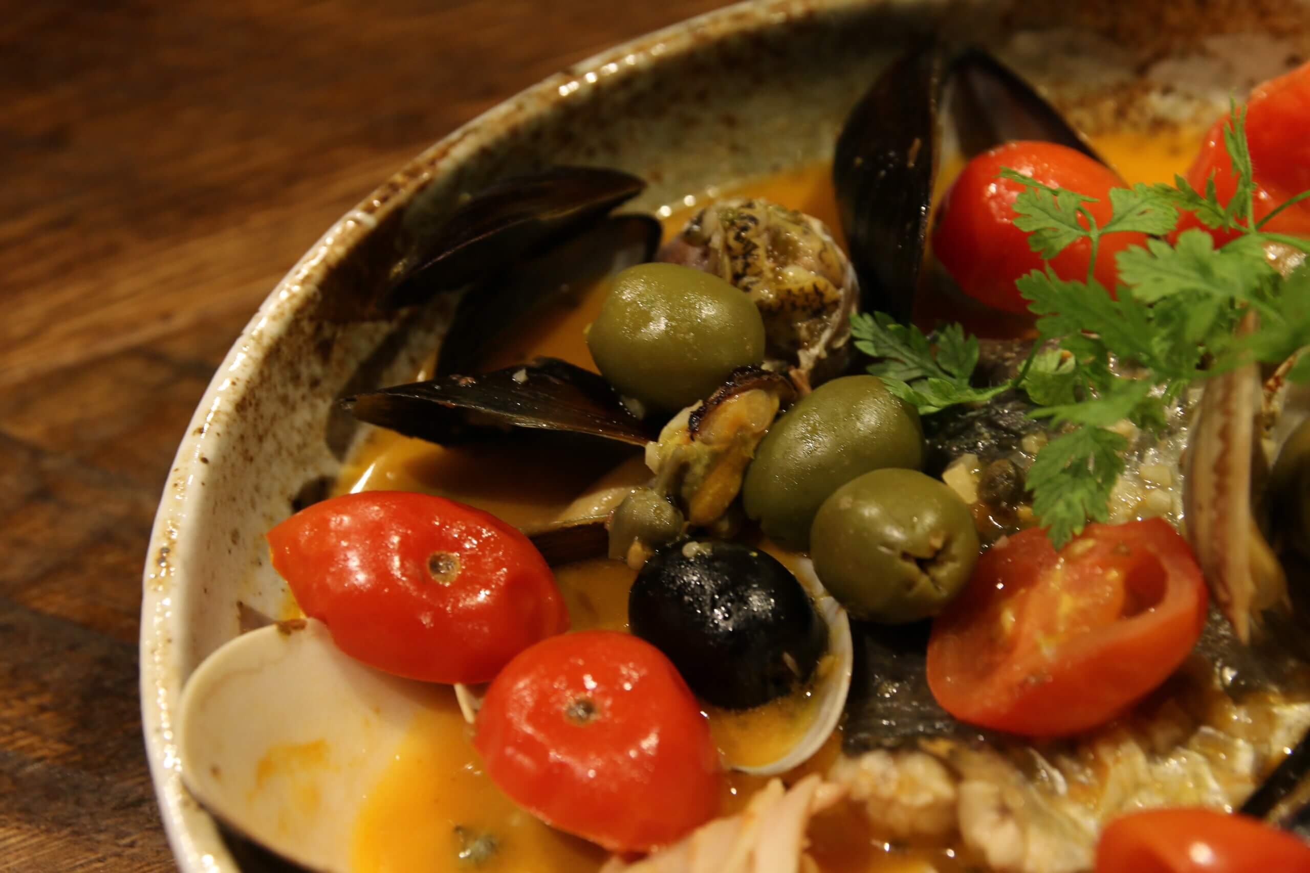 アクアパッツァはたっぷりの魚介類が嬉しい…!海鮮のうま味ががでてて手が止まりません。あまりみないツブ貝なども入っていて楽しい一品!