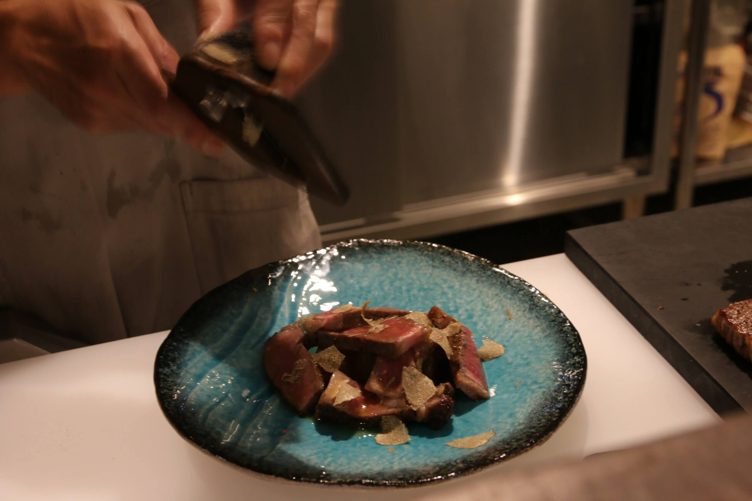 たっぷりのトリュフがかかったお肉は絶妙な火加減で焼かれていてとってもやわらか~い!コンソメで煮込まれた冬瓜もジューシーでお肉と一緒にいただくとさらに美味しい。