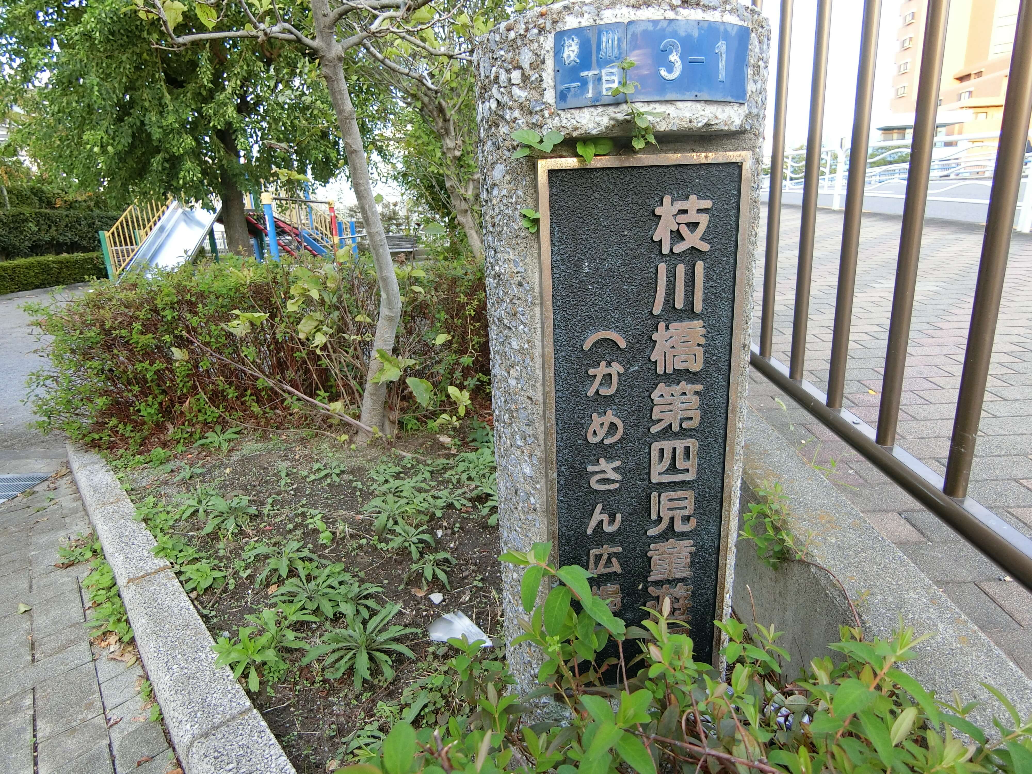 枝川橋第四児童遊園(かめさん広場)は、枝川橋のたもとの両脇に4つある公園のひとつです。