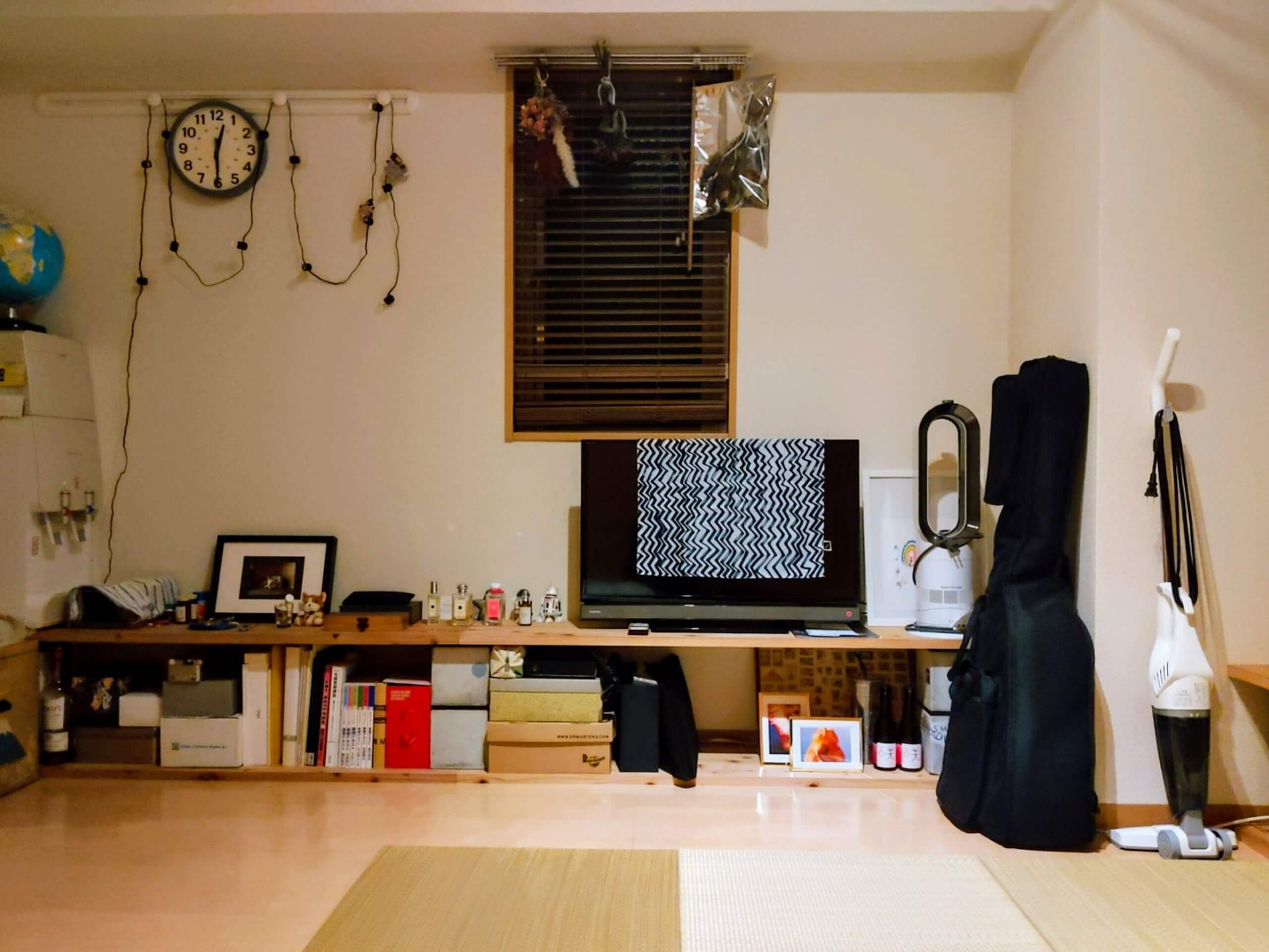 写真に写ってるやつですね。TVも本もその他もろもろも全てこの棚に置けて、お部屋に統一感が出ます。