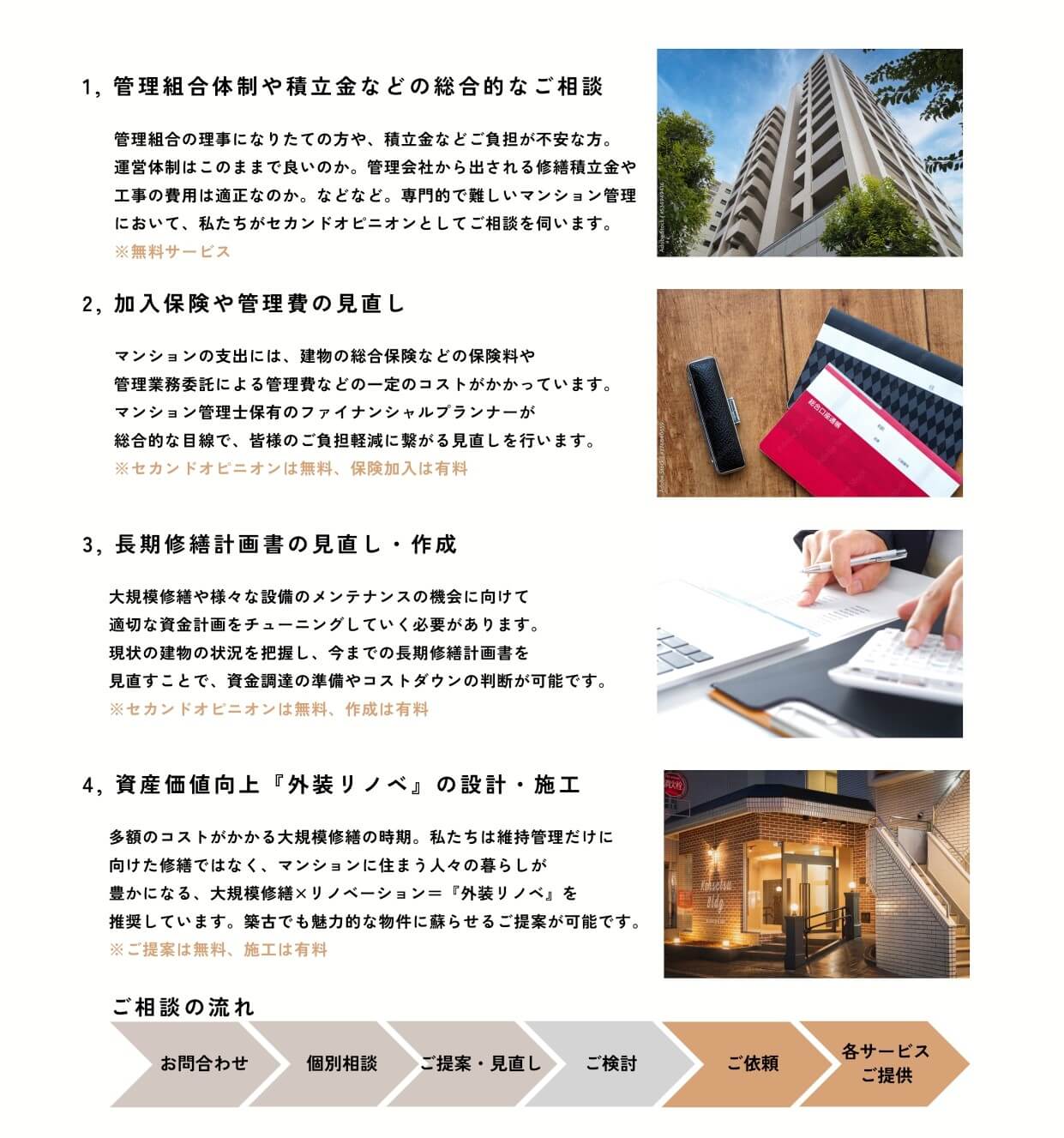 マンションや物件の購入後に続く暮らしのサポートとして「外装リノベーション」は非常に頼もしい手段だと思います。内装に加えて外装をどうメンテナンスしていくかが、安定的で発展性のあるライフプランを検討する上でも重要なポイントになるはずです。