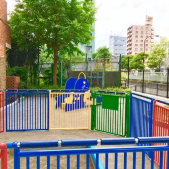 その中でもこちらの第一児童遊園は、綺麗に整備されていて、かわいらしいすべり台とカラフルな柵で囲まれた砂場があります。