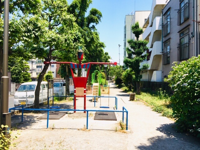 五間堀公園は、森下駅の北側出口から歩いてすぐの場所にある区立公園です。