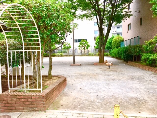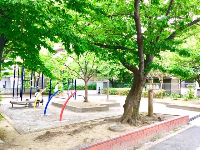 園内施設:トイレあり、遊具(鉄棒、スプリング)アスレチック、砂場、広場