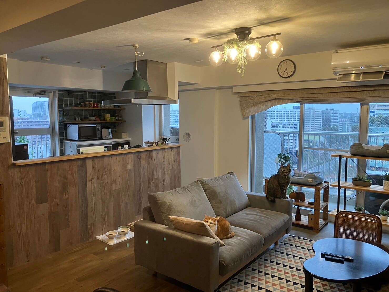 静かな環境と2匹の猫と暮らせることが最重要で、広さはそこまで重視しませんでした。あとは、リノベーションで、リビングと寝室以外にもう1室、仕事や趣味のための部屋がつくれたら、という希望はありました。