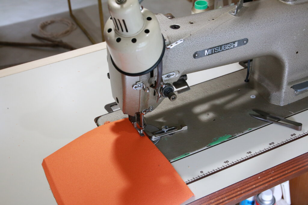 こちらは縫製しているところ。あたりまえですが、とっても早くて縫い目もキレイなんです…。