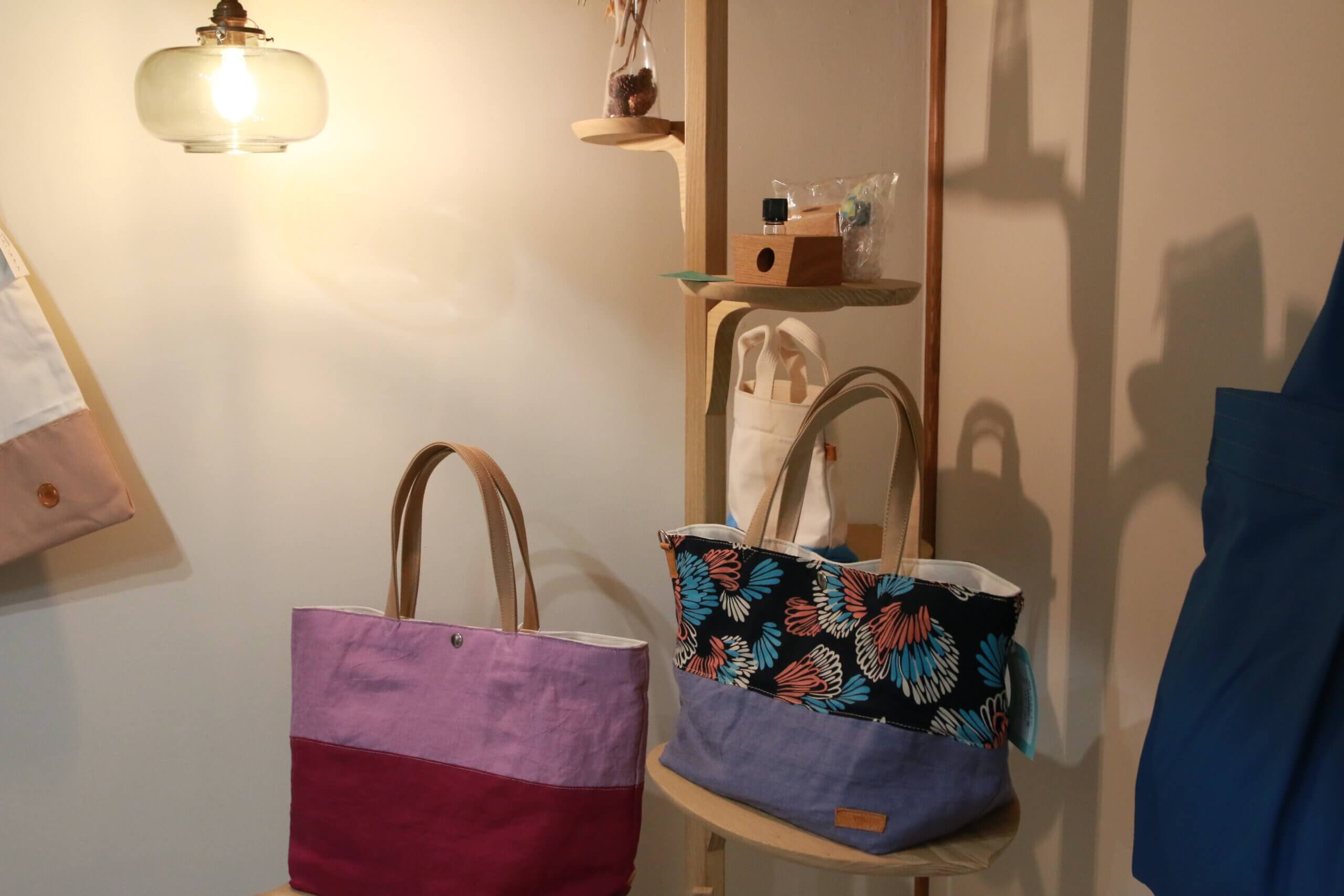 ここはお店兼アトリエ。店内にはカラフルで見ているだけでウキウキするようなカバンが沢山並んでいます。