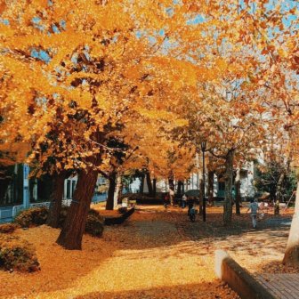清澄白河エリアのメインストリートのひとつ「清澄通り」に南東側の入口が面しているため、近くのパン屋さんや和菓子店で購入したおやつを片手に歩く人の姿も見られます。入口にある大きな銀杏の木は、清澄白河エリアの住人に、秋の訪れを感じさせるシンボル的な存在です。