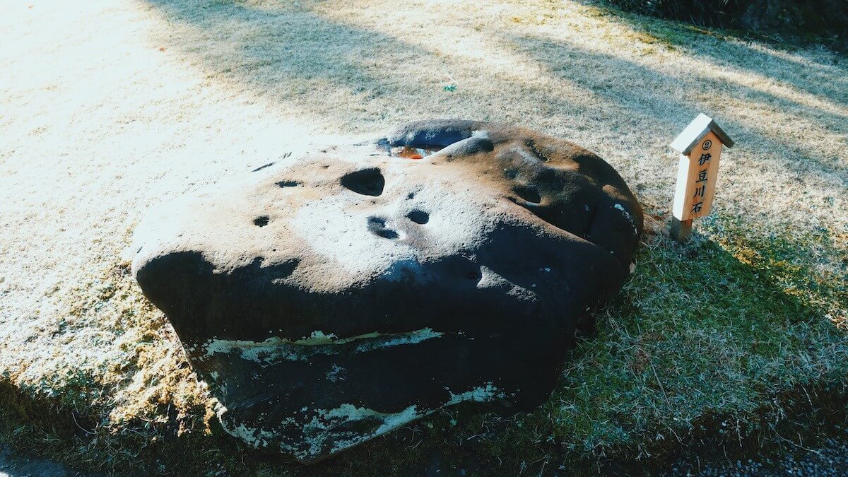 庭園の見どころのひとつは、園内に多数ある名石。これは岩崎家が自社の汽船を使って全国の石の産地から集めたとされています「伊豆磯石」や「伊予青石」「生駒石」「備中御影石」「讃岐御影石」など、石をながめて歩くだけでも、意外な発見があるかも?