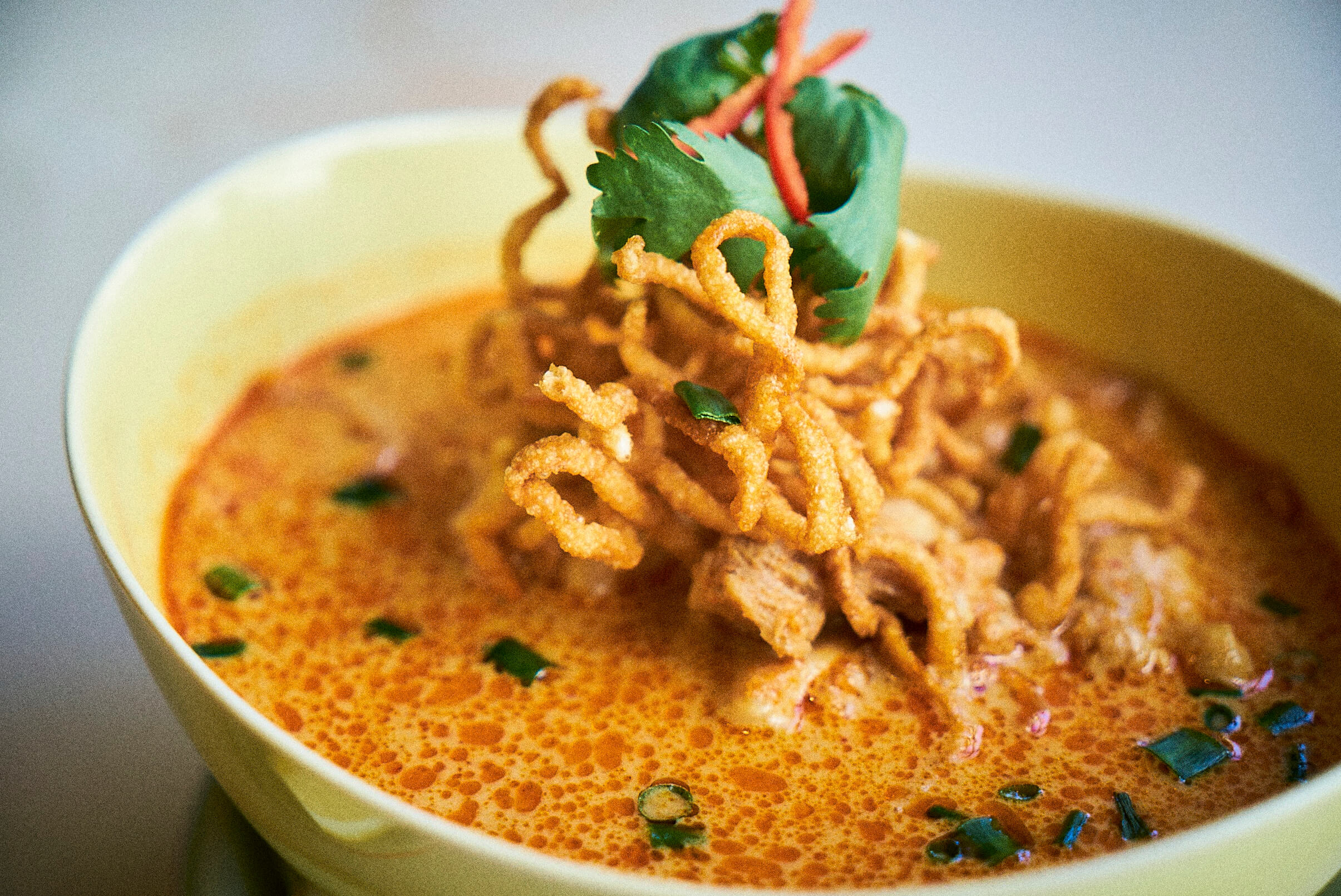▲左 名物ガパオライス。卵も半熟で美味しそう~! ▲右 カオソーイ。日本ではあまり見かけないが、タイで親しまれている揚げカレーラーメン。