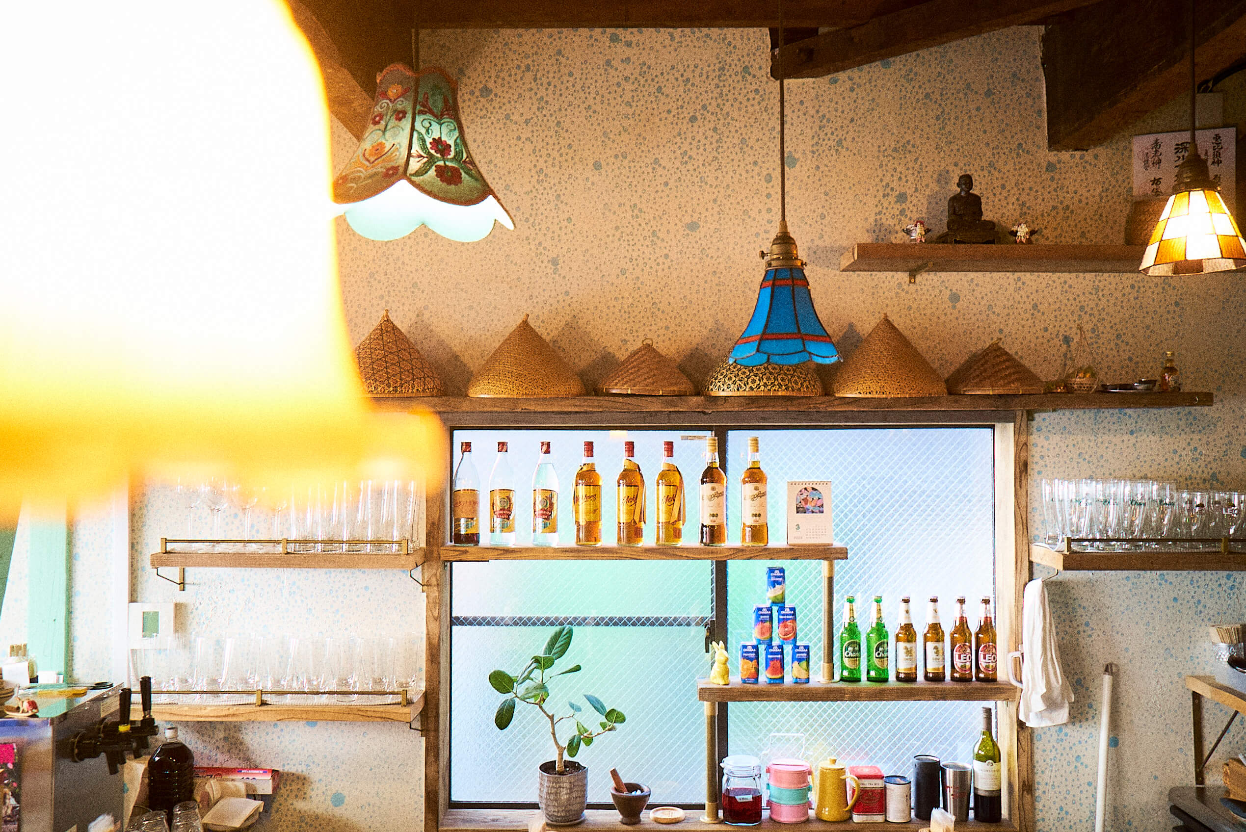 もともとあった建物の木材をあえて見えるように使い、店内にはタイの雑貨やが沢山!ヴィンテージとポップが合わさった素敵な内装です。