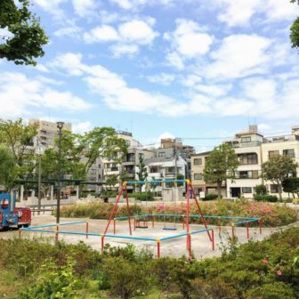 森下公園は、森下駅の南側へ歩いて2分。江東区立深川小学校の北側に広がる区立公園です。