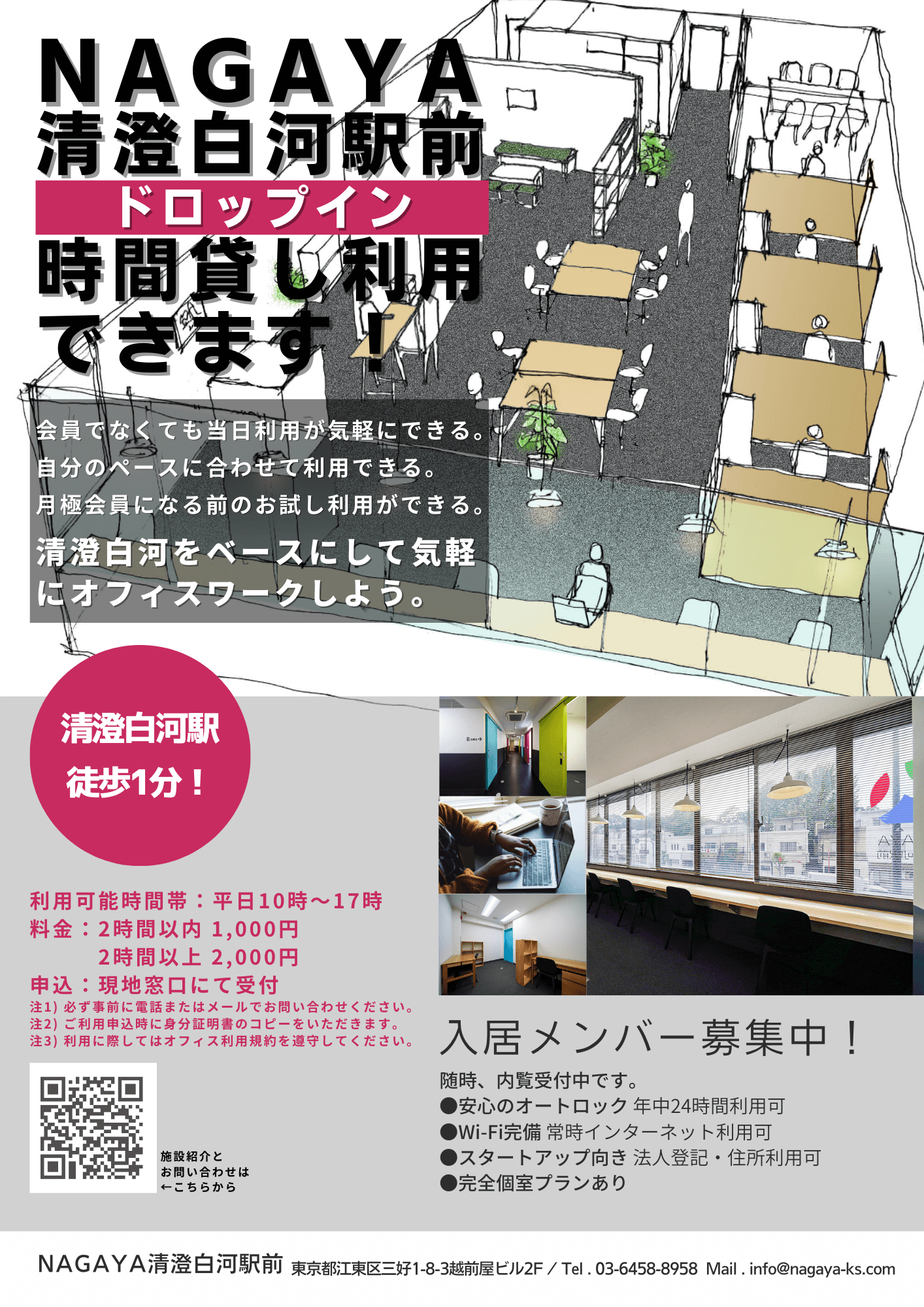 交通:東京メトロ半蔵門線「清澄白河」駅徒歩6分および都営大江戸線「清澄白河」駅徒歩1分