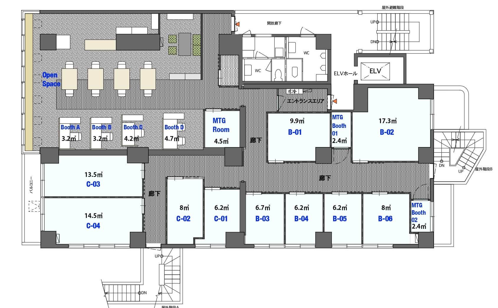 NAGAYA清澄白河駅前は、個室タイプを中心にミーティングループやリモートルーム、オープンスペースを兼ね備えた多様性のあるフロアとなっていて、地元在住の方を中心にさまざまな業種の方々が利用されています。
