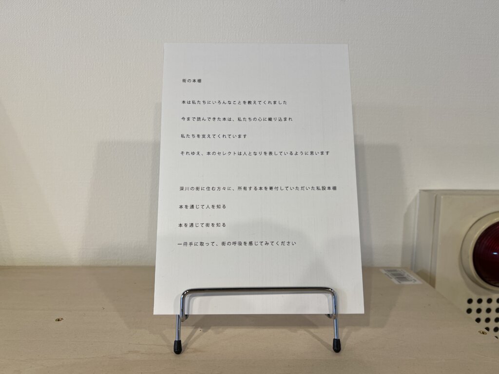 この街に住む方から本の寄付を募り、この街の人のことを知れる街の図書館にもなっています。