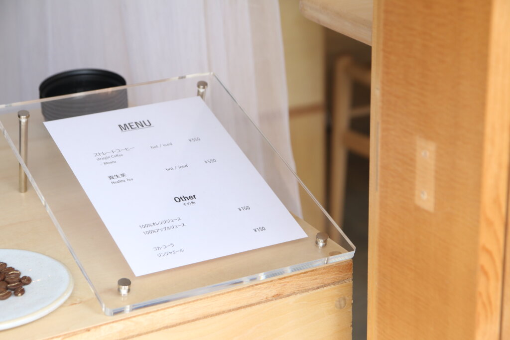 メニューはコーヒーを中心に養生茶やお子様も飲めるジュースもご用意。