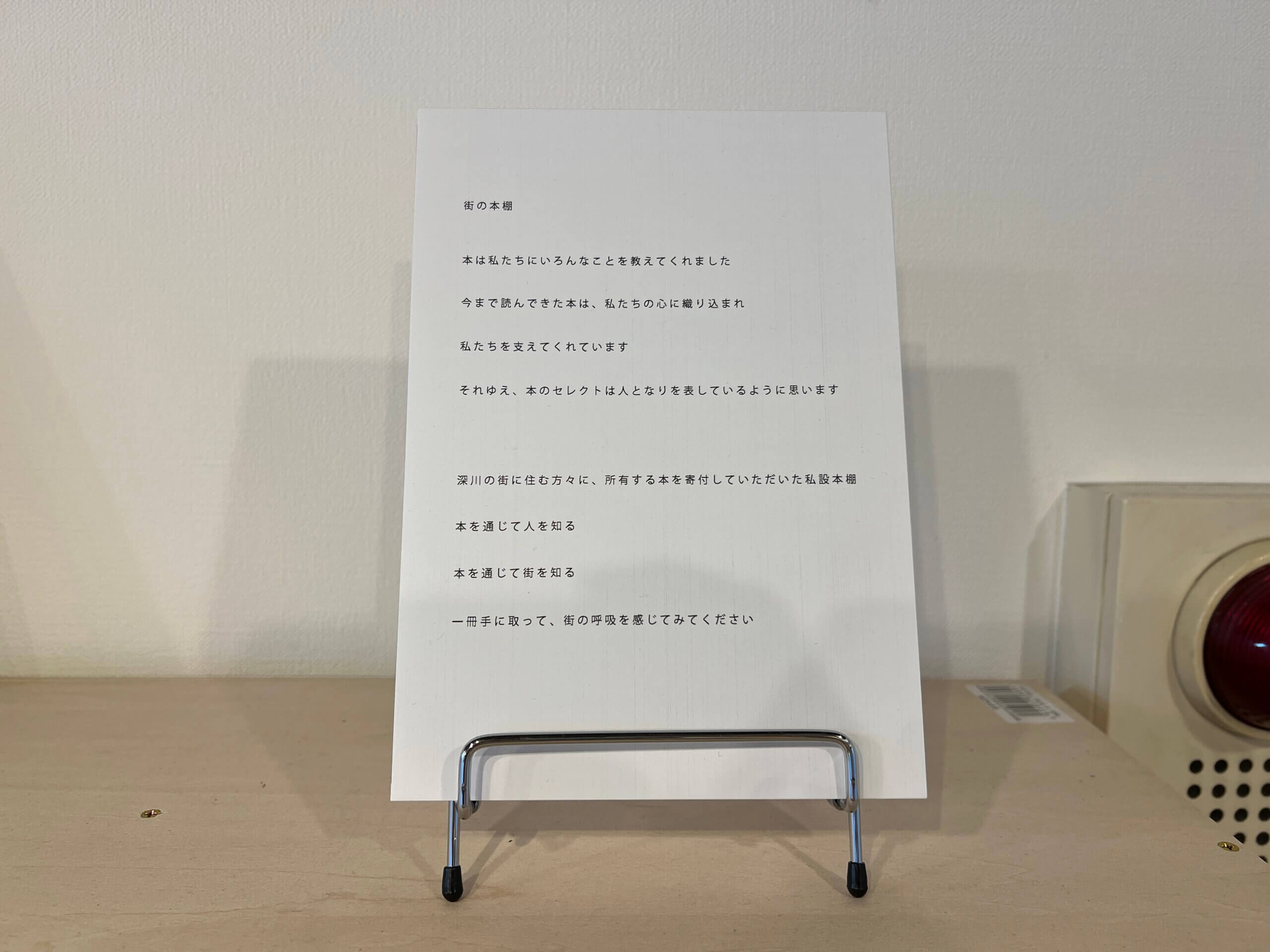 この街に住む方から本の寄付を募り、この街の人のことを知れる街の図書館にもなっています。