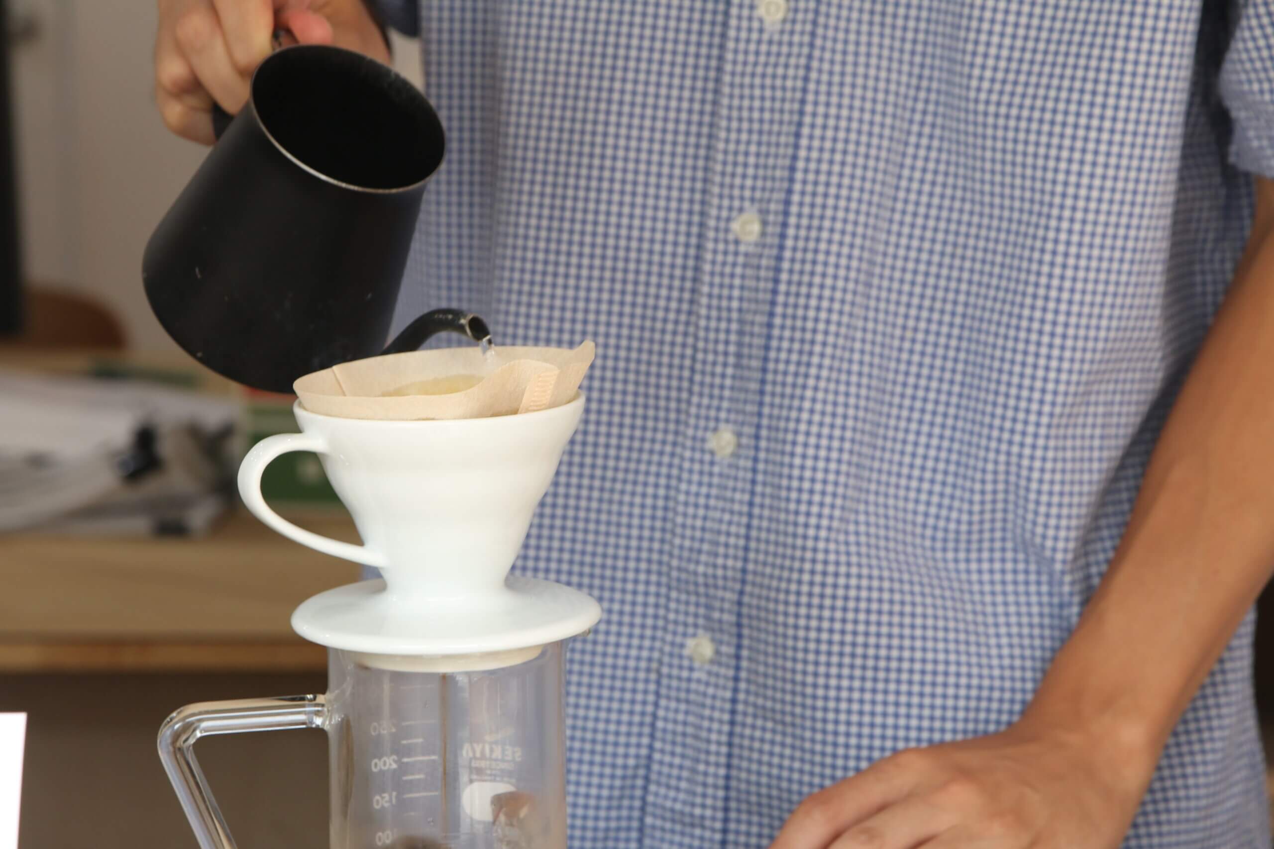 ▲右 コーヒーを淹れる鎌松さん。コーヒーができる時間を待つのも豊かな時間。