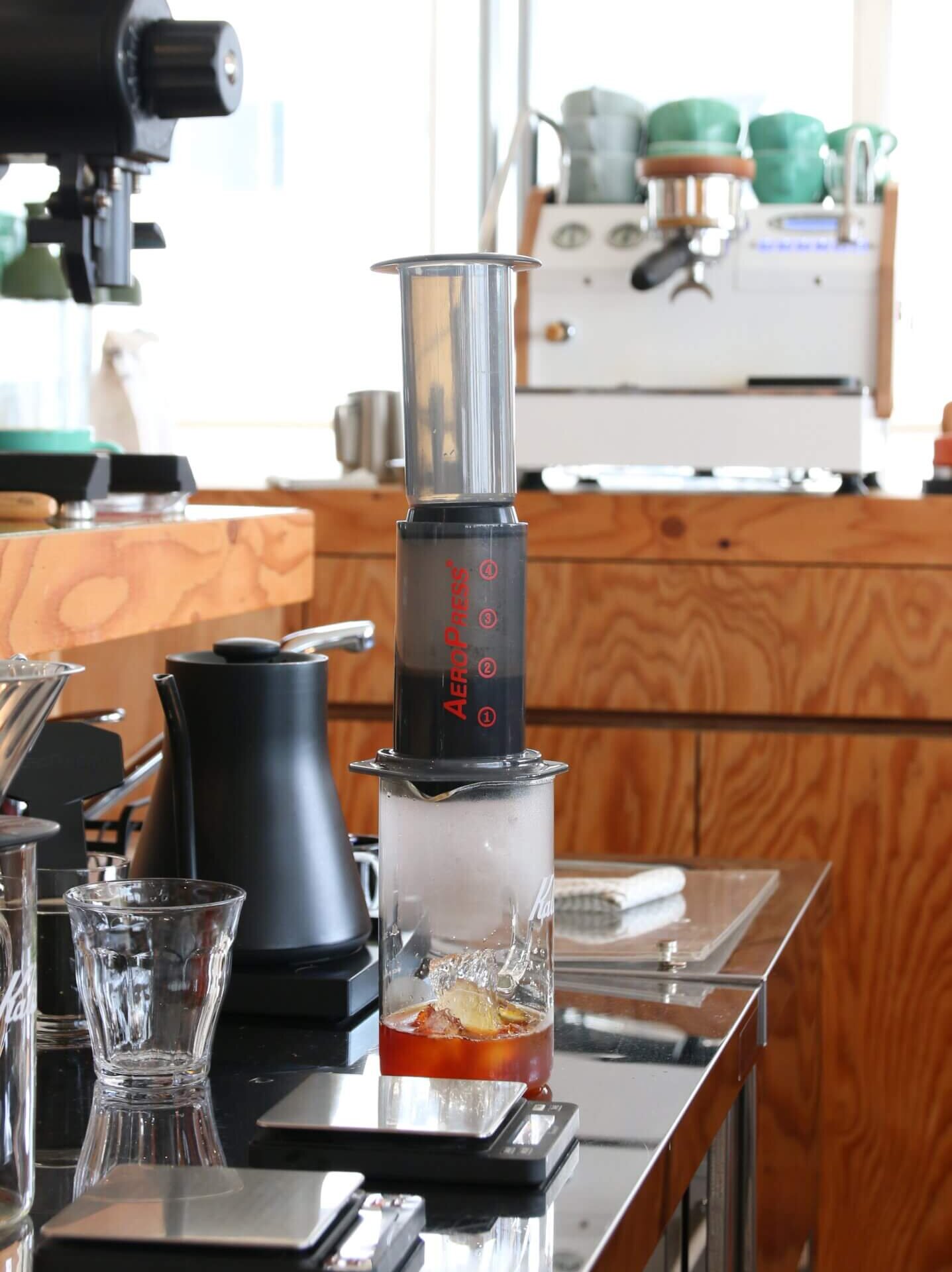 個人的なお気に入りは、「AERO PRESS」という道具を使っていれたアイスコーヒー。