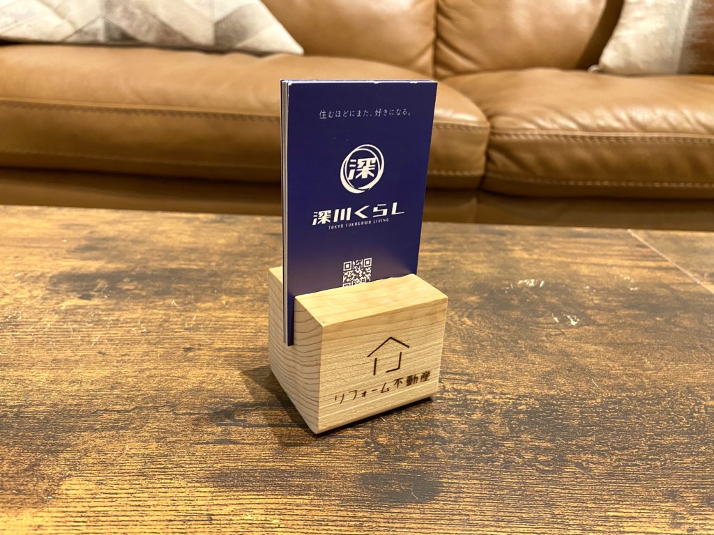 店内には深川くらしのショップカードの入ったリフォーム不動産特製のカードスタンドが置いてありますので探してみてくださいね~♪