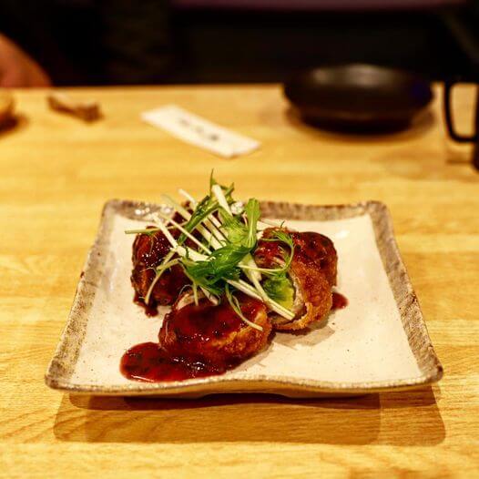 - アボカドとチーズの豚巻フライ(梅ソース)