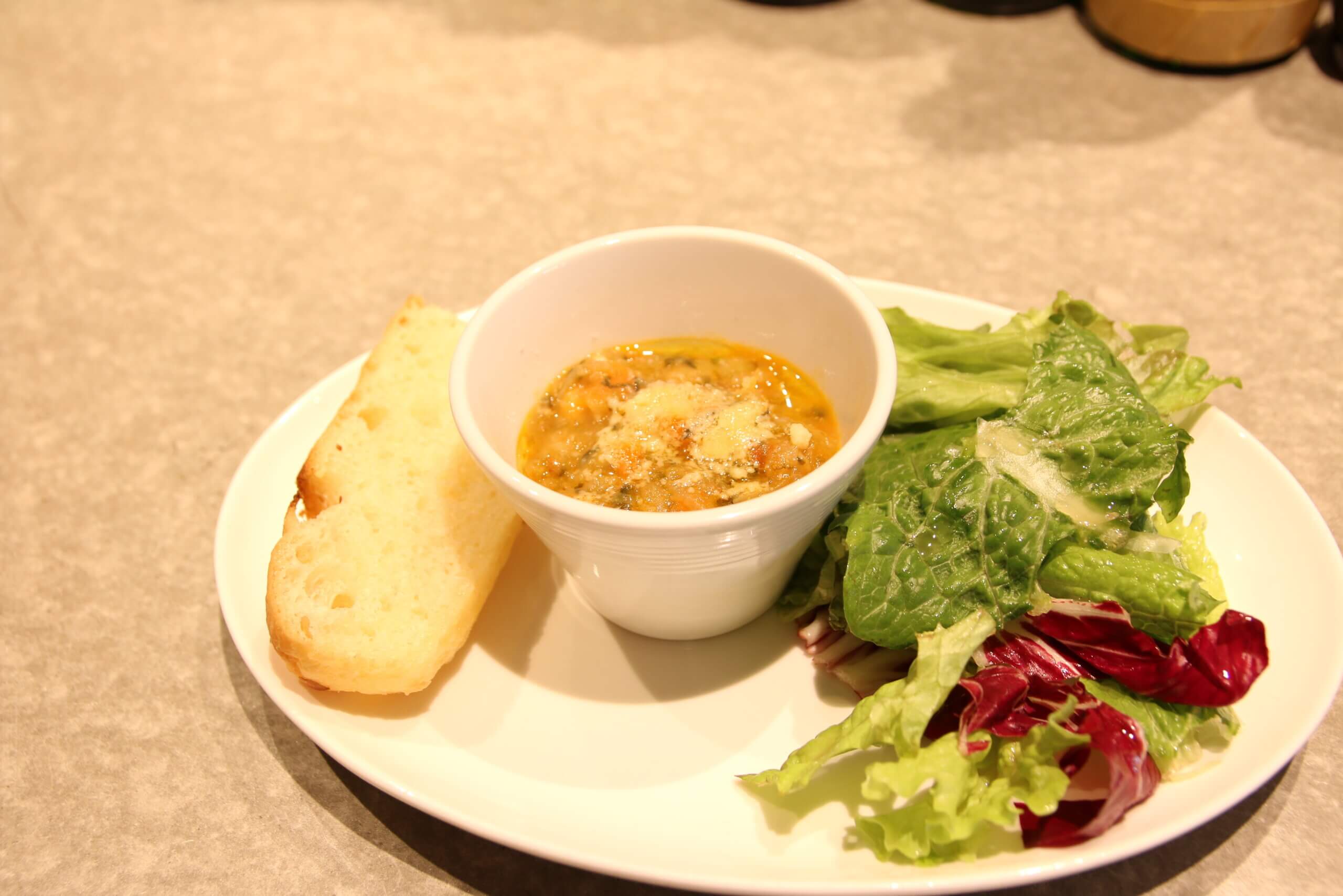 ランチにはセットでサラダとスープ、フォカッチャもつけることができます◎これでもう満足!ですが、もう一品デザートもぜひ食べていただきたい!