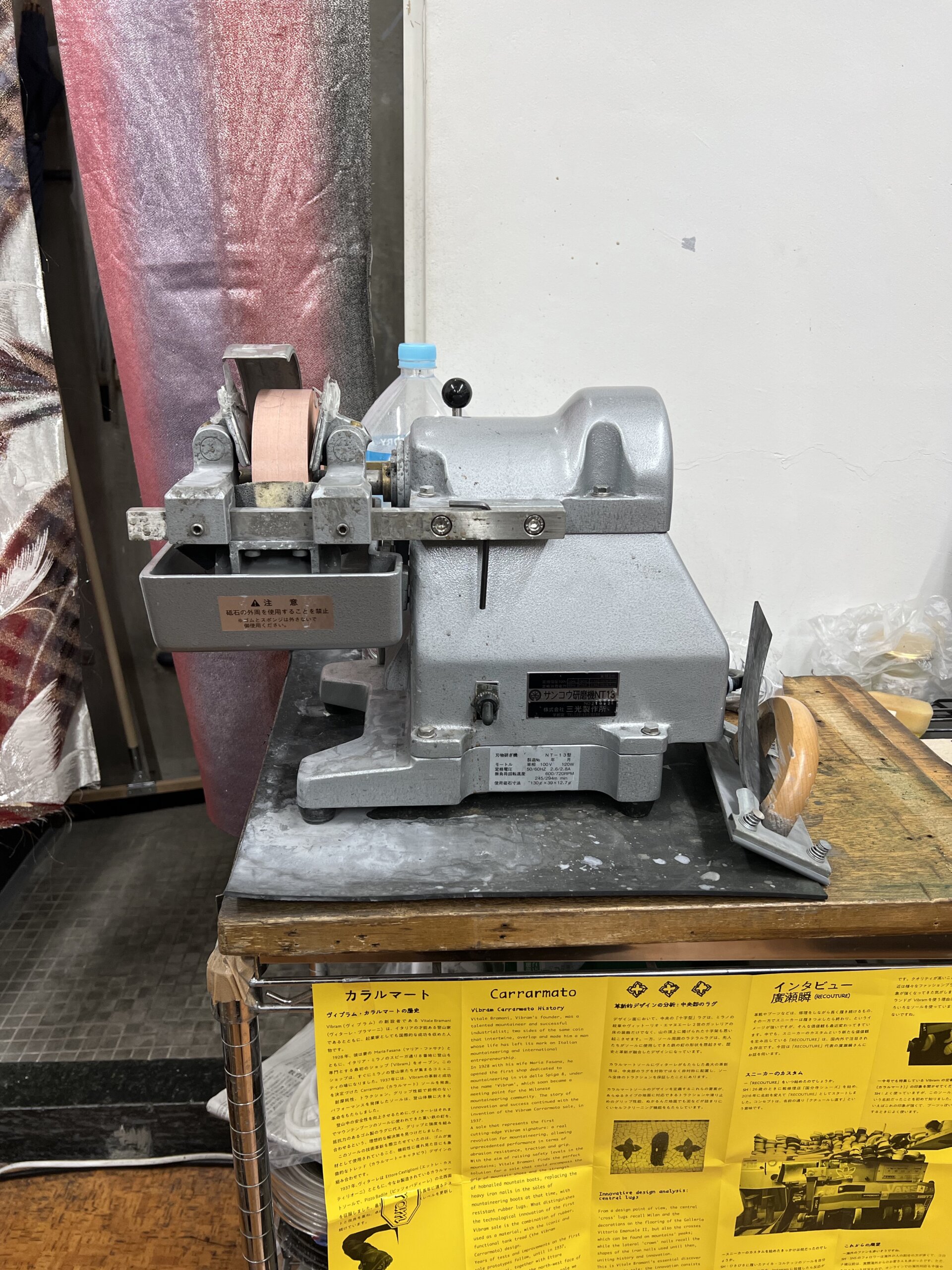 ほかにも包丁を研ぐための道具や、圧着させるための機械、革を薄く延ばすための機械、鍵を作る機械などなど……
