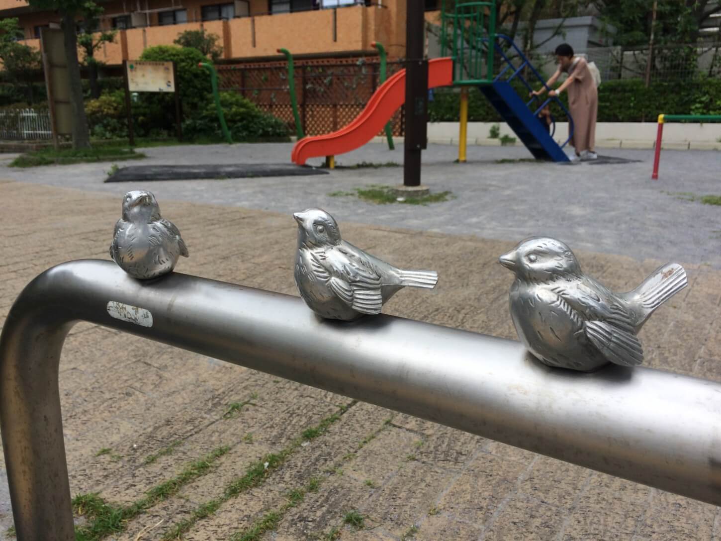 - 公園の策に鳥3羽の彫刻