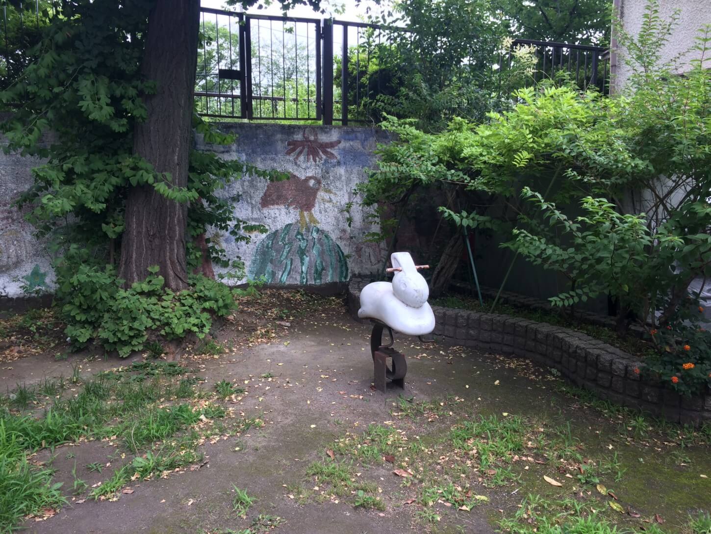 遊具が無いと思っていたら奥にうさぎの乗り物がありました。なんだかとてもシュールです。