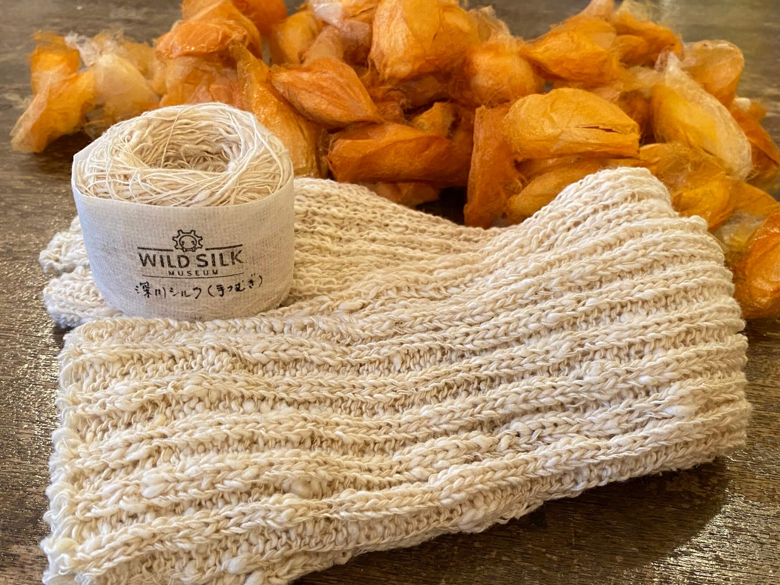 シルクは刺激もすくないので肌が敏感な方にも◎糸ももちろんミュージアムでお買い求めいただけます。