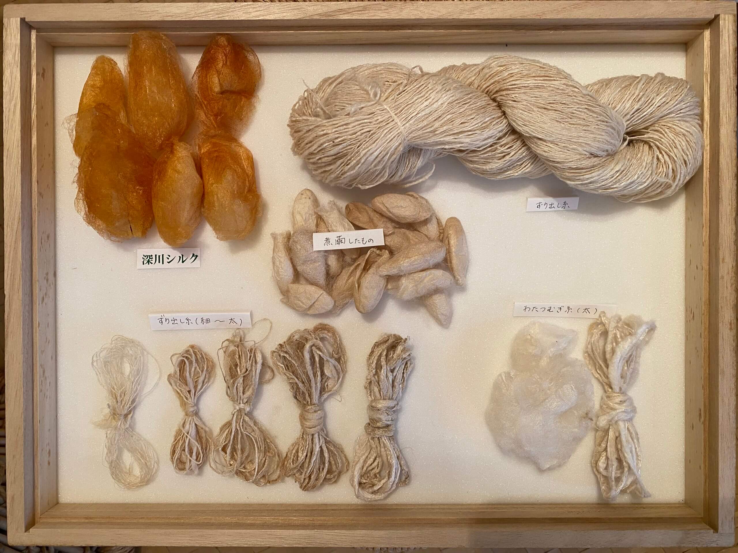 繭から糸を取る体験や、シルク糸で手織り体験などができるワークショップや(不定期)、糸などの製品も取り扱い。