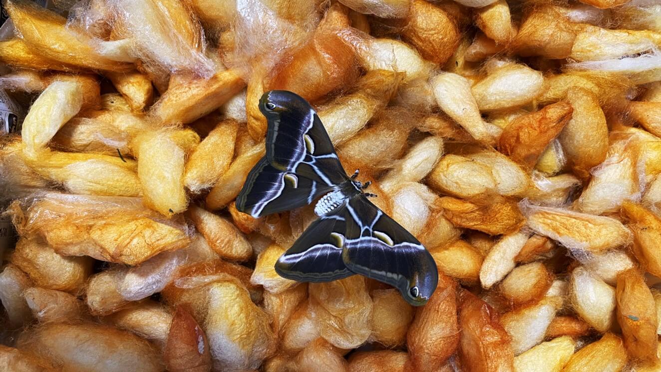 野生の蚕(野蚕)はいびつで形もさまざま。糸にしたときの特徴も違います。